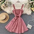 Размер единый, соответствует XS-S О параметрах 89-67-90 Рост 163 см Сел отлично ( как по мне шили). На спинке есть молния. Материал чуть эластичный, к телу приятный. Пояс вшит. Можно завязывать спереди и сзади Юбка- солнце. Линия талии чуть завышена, поэтому рекомендовать могу на рост не выше 165 см. По качеству все устроило. Строчки ровные и надежные. Нет ни пропусков, ни перекосов. Торчащие ниточки отсутствовали. Молния работает исправно Стоимость на момент покупки составила 1209 руб. Цена-подарок. Обновкой осталась удовлетворенной полностью.